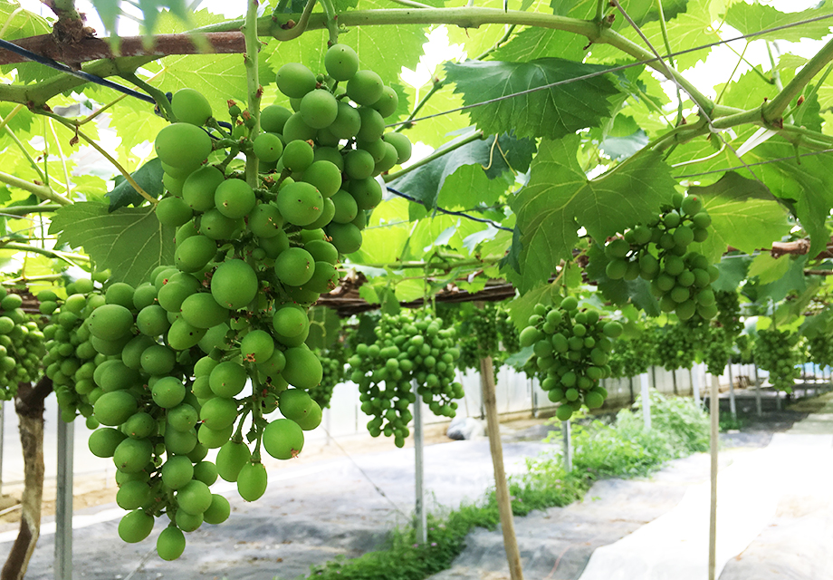 敷地内にはたくさんのハウスが整然と並び、その中にはこれからおいしく熟していくであろうぶどうたちがたくさんなっていました。