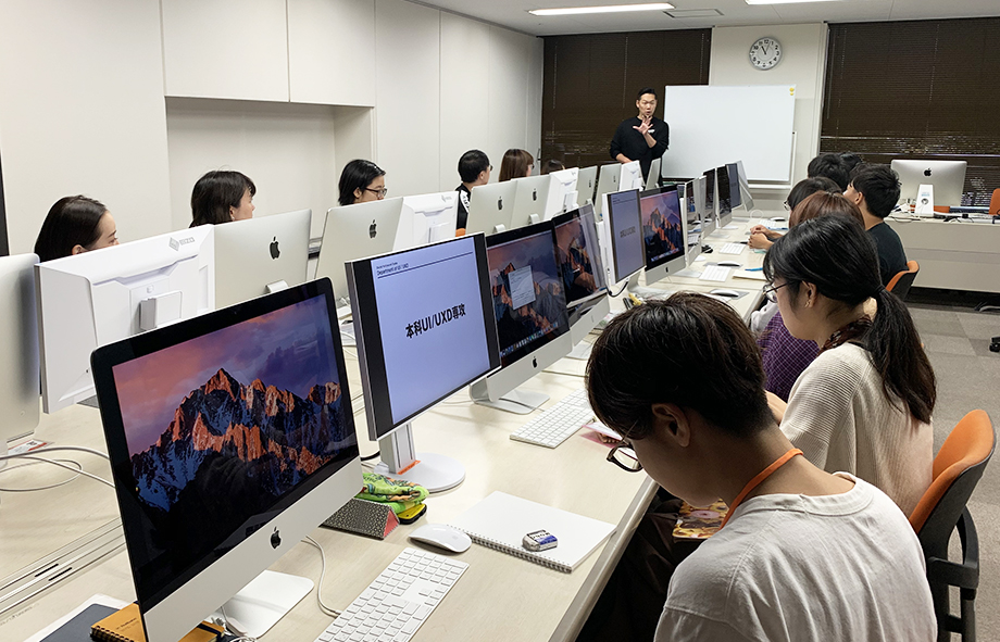 デジタルハリウッドは入学のタイミングが年2回(4月と9月)に分かれており、私は9月に入学した「本科UI/UXD専攻」の生徒へグラフィックデザインをお教えしています。
