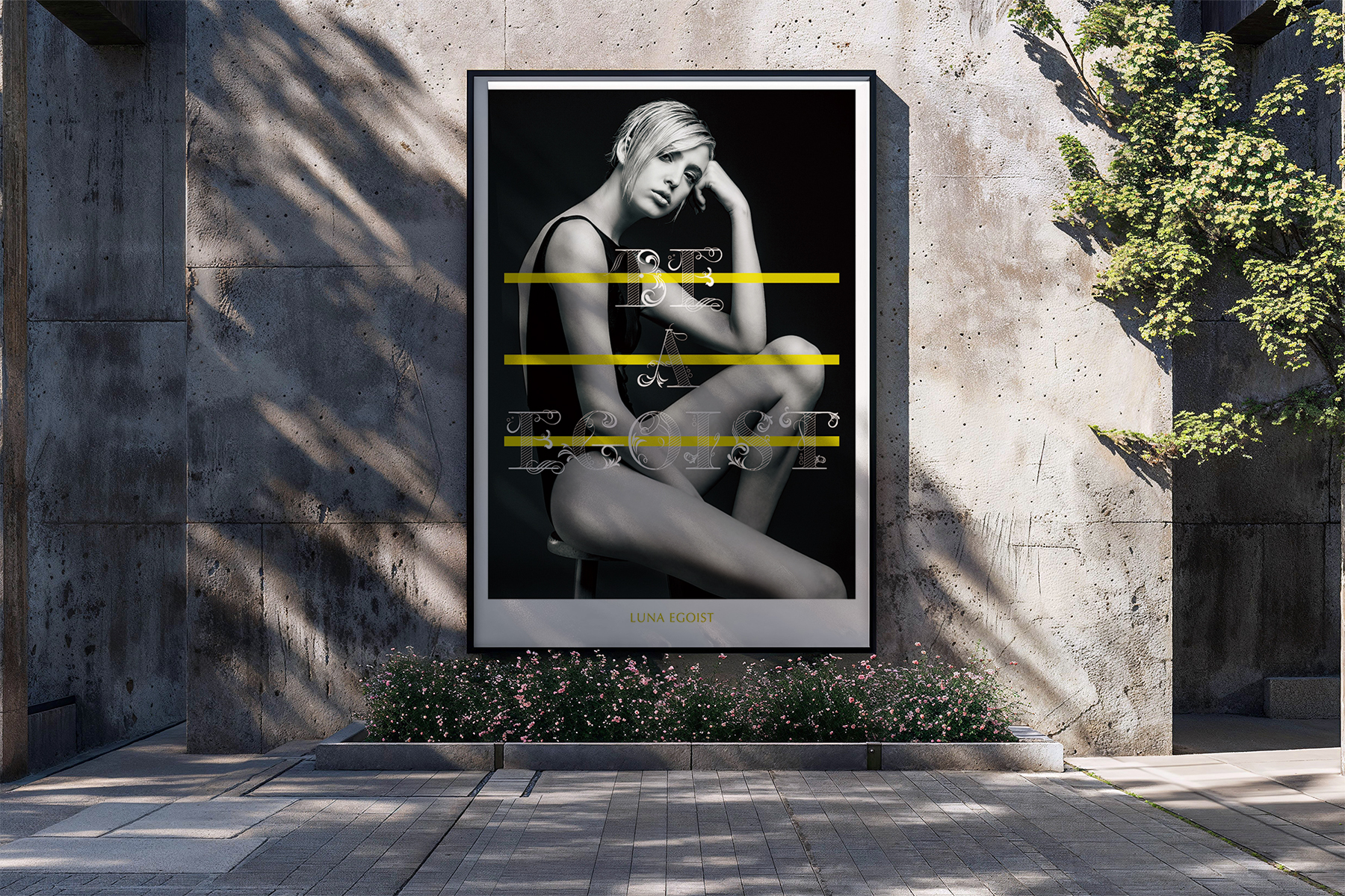 アパレルセレクトショップのブランドポスター ビジュアルをメインとし、静かながら強い写真をベースに、女性らしい曲線を活かしたタイポグラフィを融合させた表現で制作。